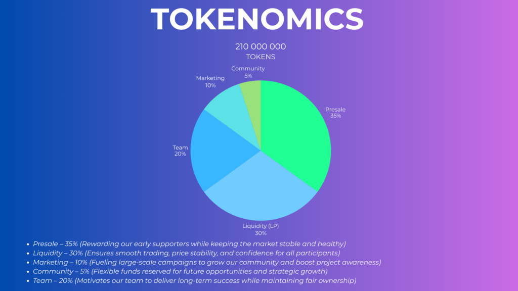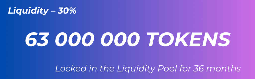 Liquidity – 30% All tokens allocated for liquidity will be locked for a period of 36 months, ensuring stable liquidity and long-term confidence among traders and investors.